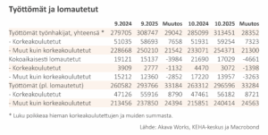 Työttömyys- ja lomautuskatsaus 10/2025: Työttömyyden nousu ei suostu helpottamaan